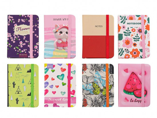 Gumis notesz A7 vonalas, 80 lap mix