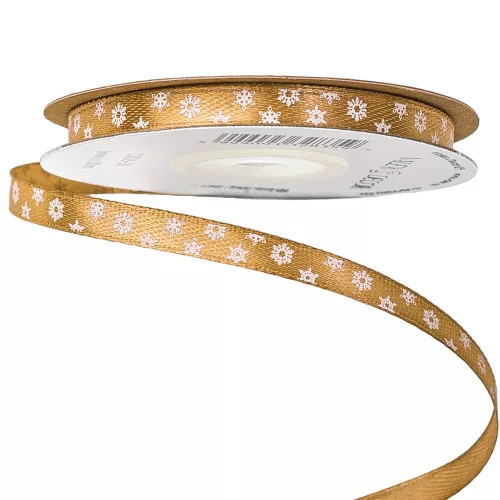 Hópelyhes karácsonyi szatén szalag 6mm x 20m - Aranybarna